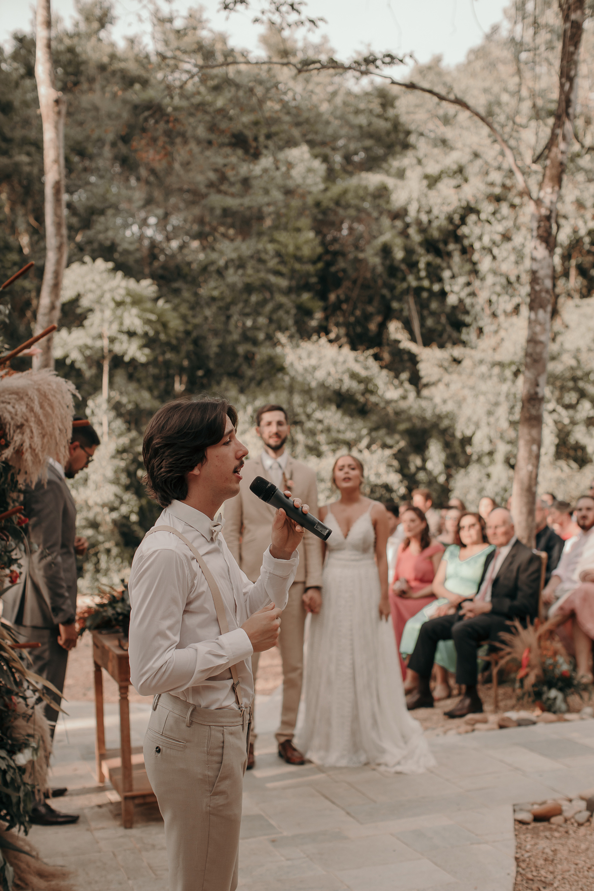 O estilo e toda proposta do casamento refletiu muito deles, um ambiente leve, familiar, um jantar com direito a mesão comunitário para juntar os amigos.