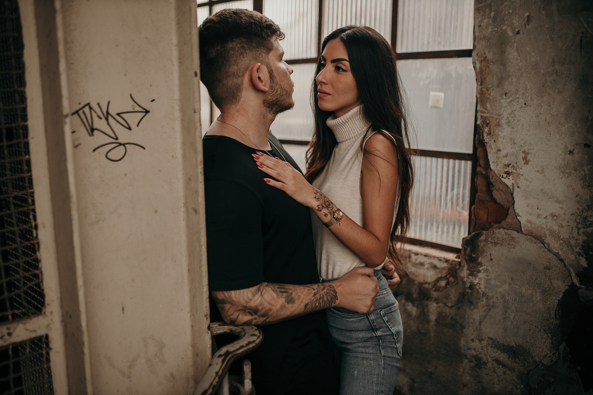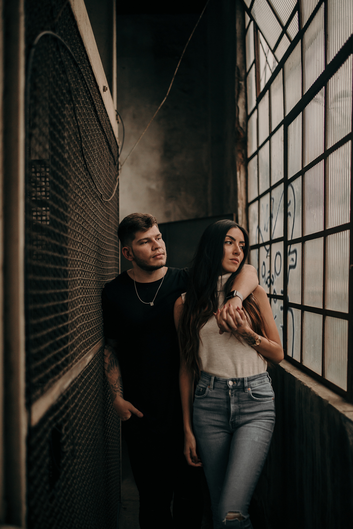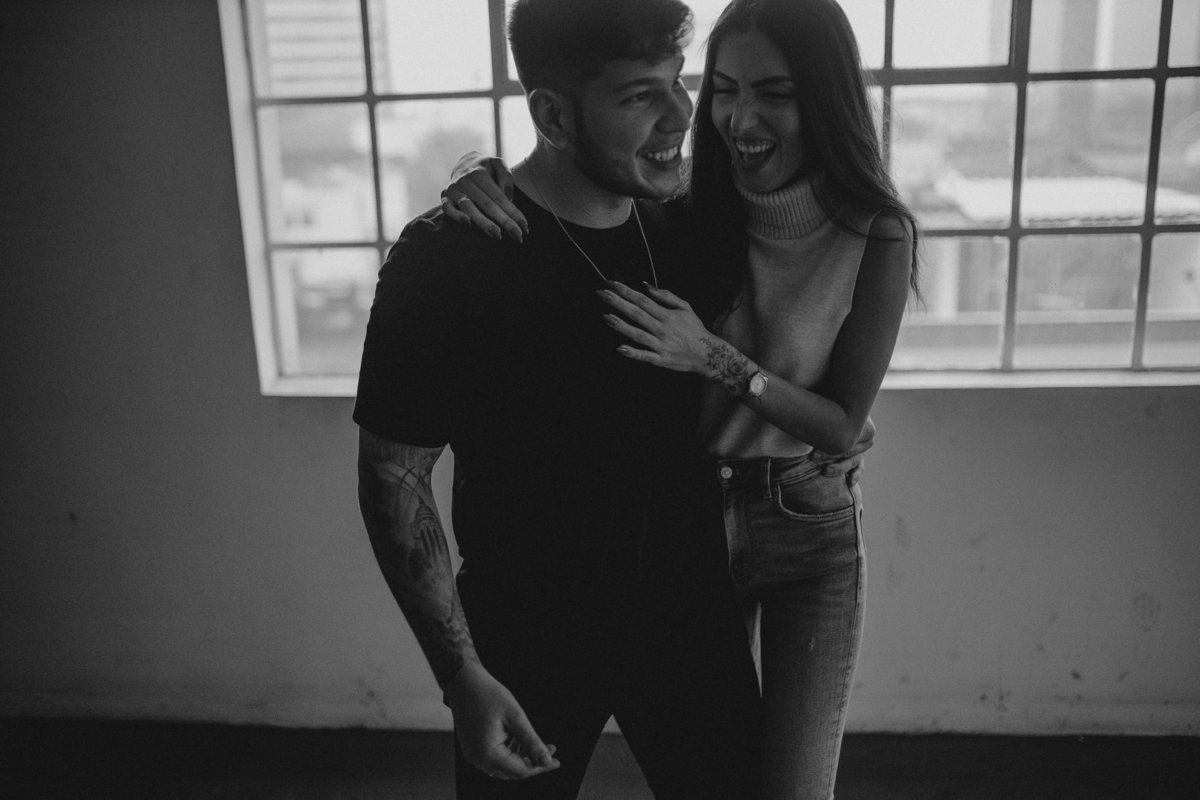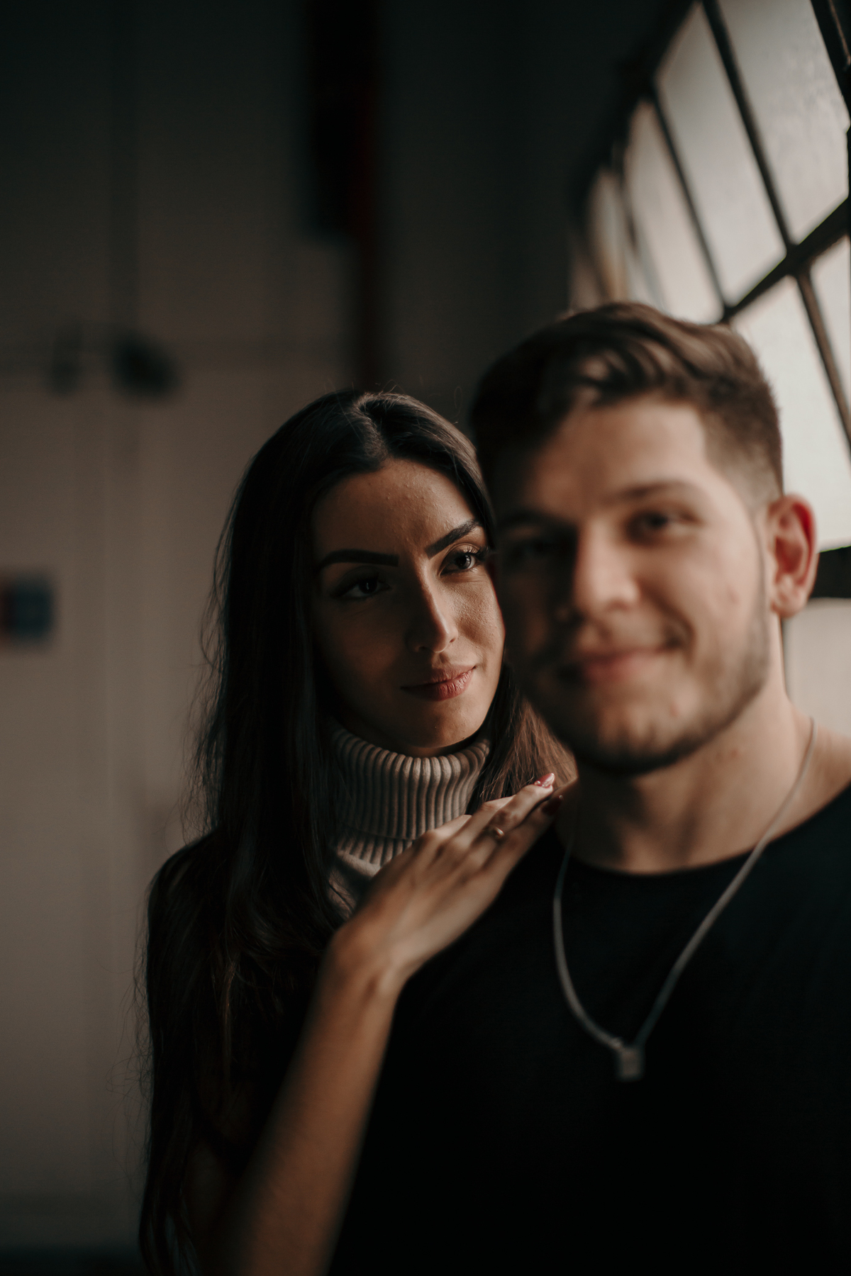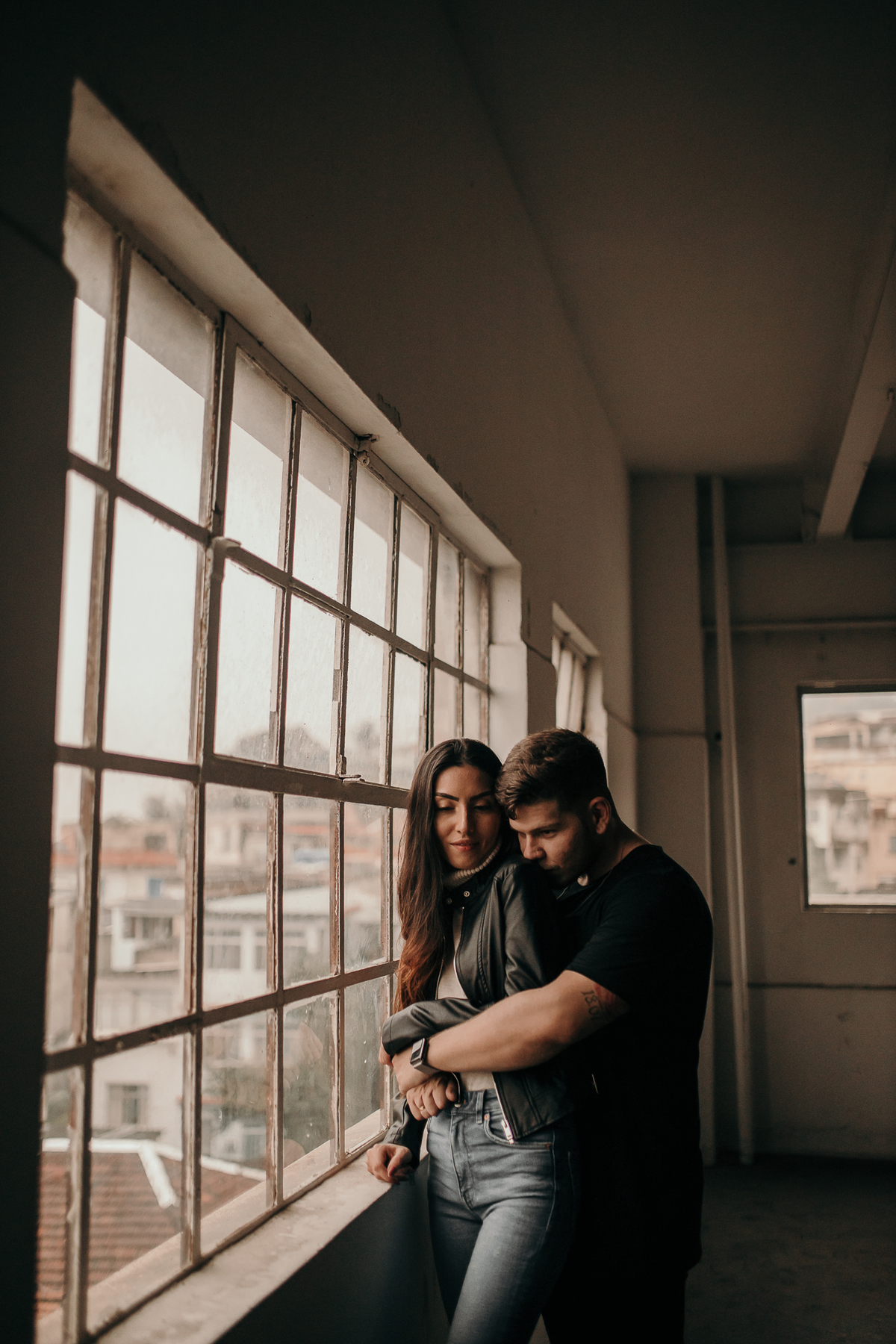 Nós sempre gostamos de conversar para entender mais sobre os nossos casais, Bia faz arquitetura e William super curte uma pegada mais urbana, daí logo pensamos: vamos com eles para a Fábrica Bhering !