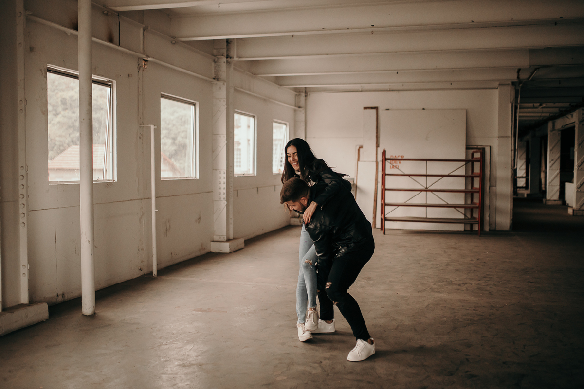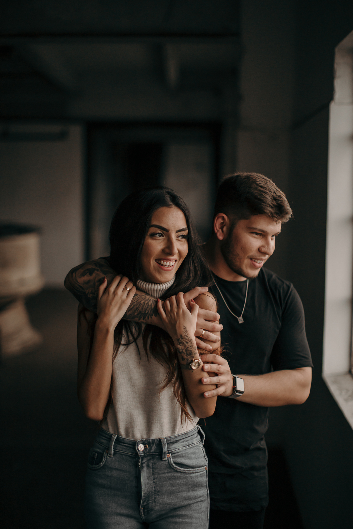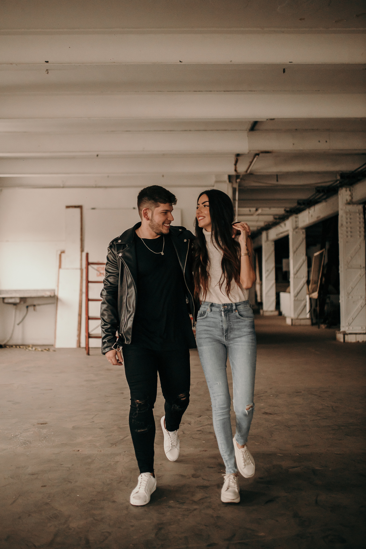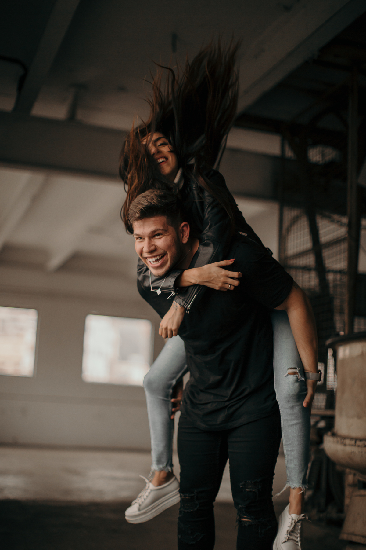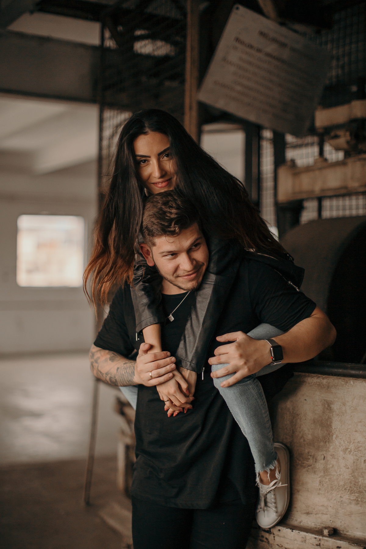 Nós sempre gostamos de conversar para entender mais sobre os nossos casais, Bia faz arquitetura e William super curte uma pegada mais urbana, daí logo pensamos: vamos com eles para a Fábrica Bhering !